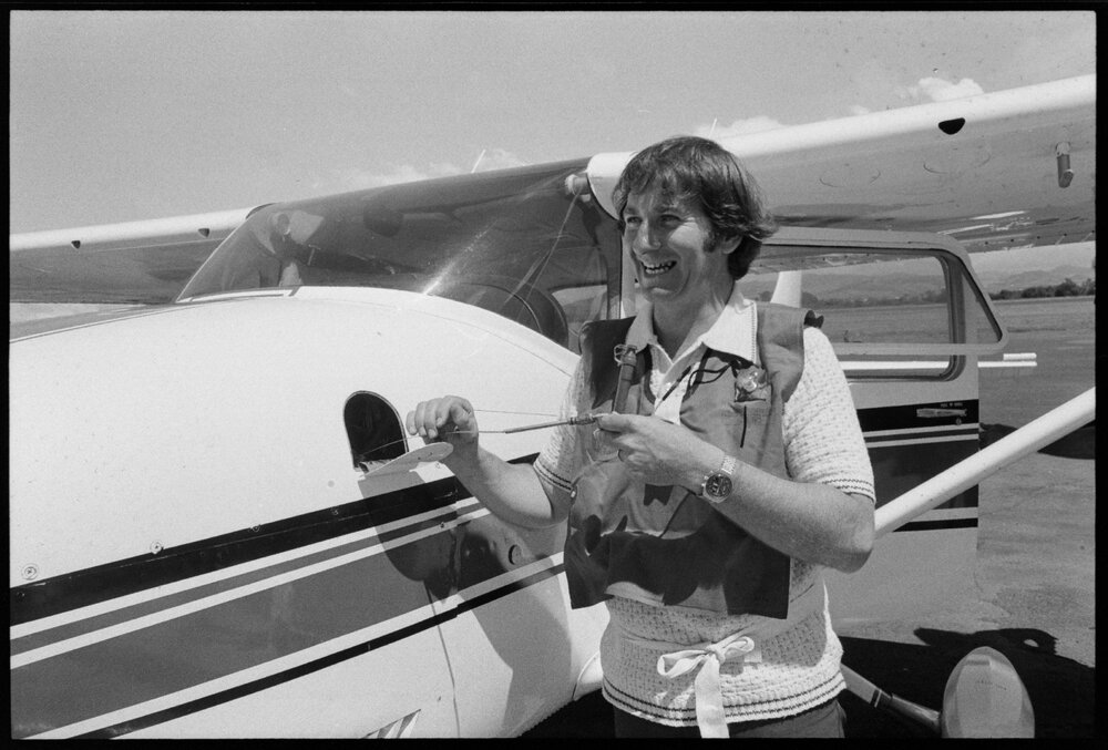 Date18 December 1974Reference Numberphoto gcc-31241DescriptionMaking last minute checks before taking off on the longest stage of their journey are Mr Peter Orr (left) and Mr Philip Keen, out of view, of Invercargill. They set a record by flying around NZ in a single-engined aircraft within 24 hours. Published 18 December 1974.FormatNegativePhysical Description35mm black-and-white negative (1/3)Photographer/CreatorBay of Plenty Times