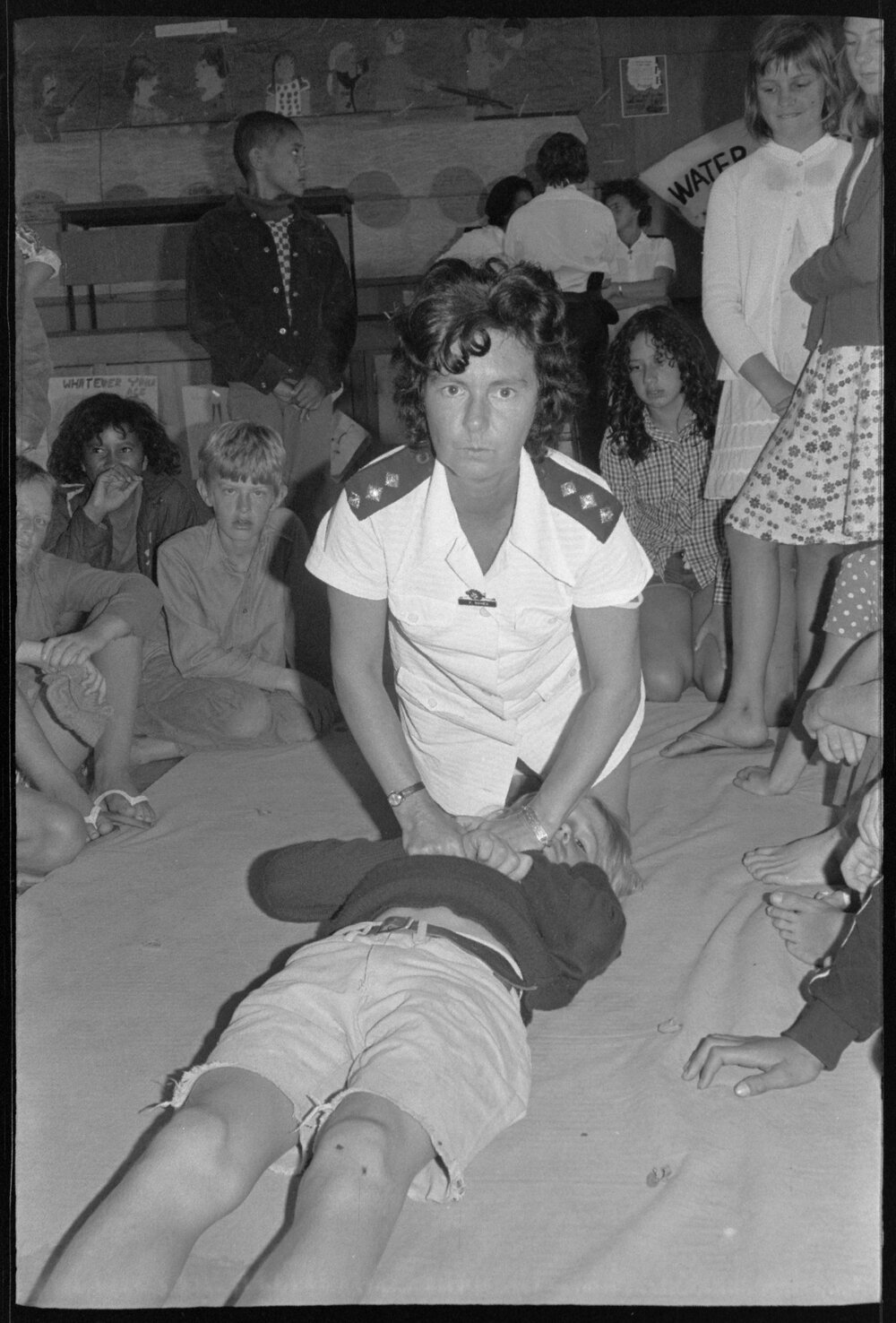Date20 December 1974Reference Numberphoto gcc-31315DescriptionKerry Morris, 13, has instruction in the Silvester-Broche method of resuscitation from Mrs Davies. Published 20 December 1974.FormatNegativePhysical Description35mm black-and-white negative (1/5)Photographer/CreatorBay of Plenty Times