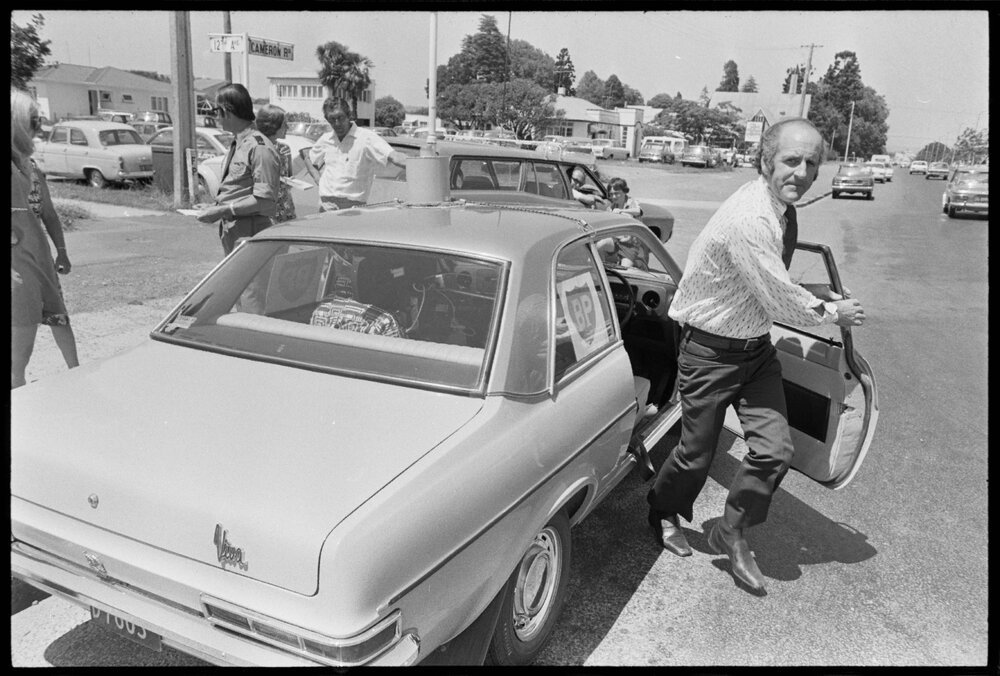Date20 December 1974Reference Numberphoto gcc-31322DescriptionInternational racing driver Denny Hulme took part in an economy run. With one gallon of petrol and an average speed of 40mph, Hulme clocked up 77.4km (48.15 miles) before the gallon was completely used up. Published 20 December 1974.FormatNegativePhysical Description35mm black-and-white negative (3/6)Photographer/CreatorBay of Plenty Times
