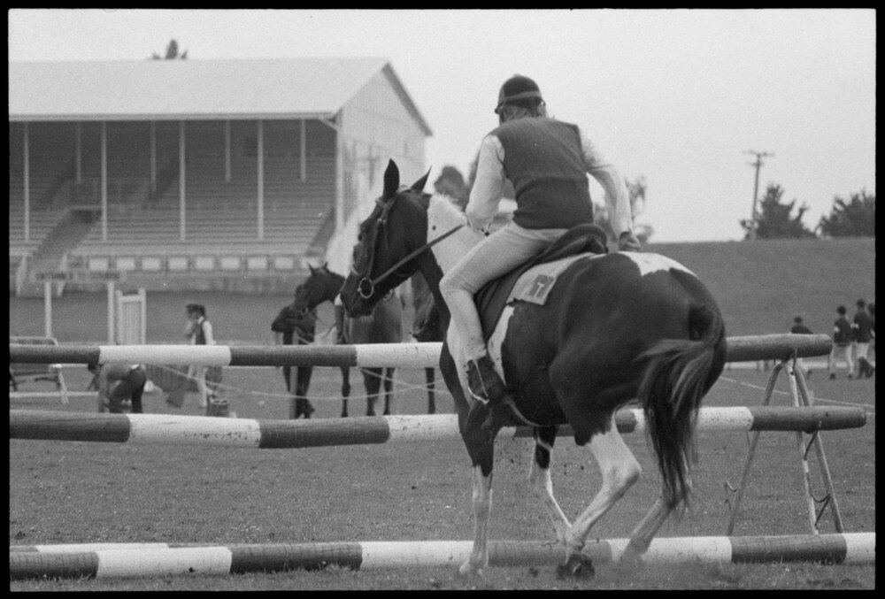 Date23 December 1974Reference Numberphoto gcc-31346DescriptionA rider competes in the 12-to-Under-14 years jumping event in the Auckland Provincial Pony Clubs Rider Championship. Published 23 December 1974.FormatNegativePhysical Description35mm black-and-white negative (1/15)Photographer/CreatorBay of Plenty Times