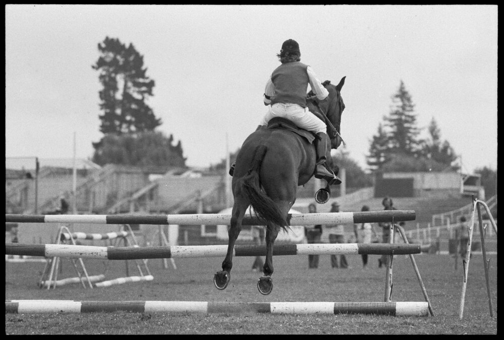 Date23 December 1974Reference Numberphoto gcc-31347DescriptionA rider competes in the 12-to-Under-14 years jumping event in the Auckland Provincial Pony Clubs Rider Championship. Published 23 December 1974.FormatNegativePhysical Description35mm black-and-white negative (2/15)Photographer/CreatorBay of Plenty Times