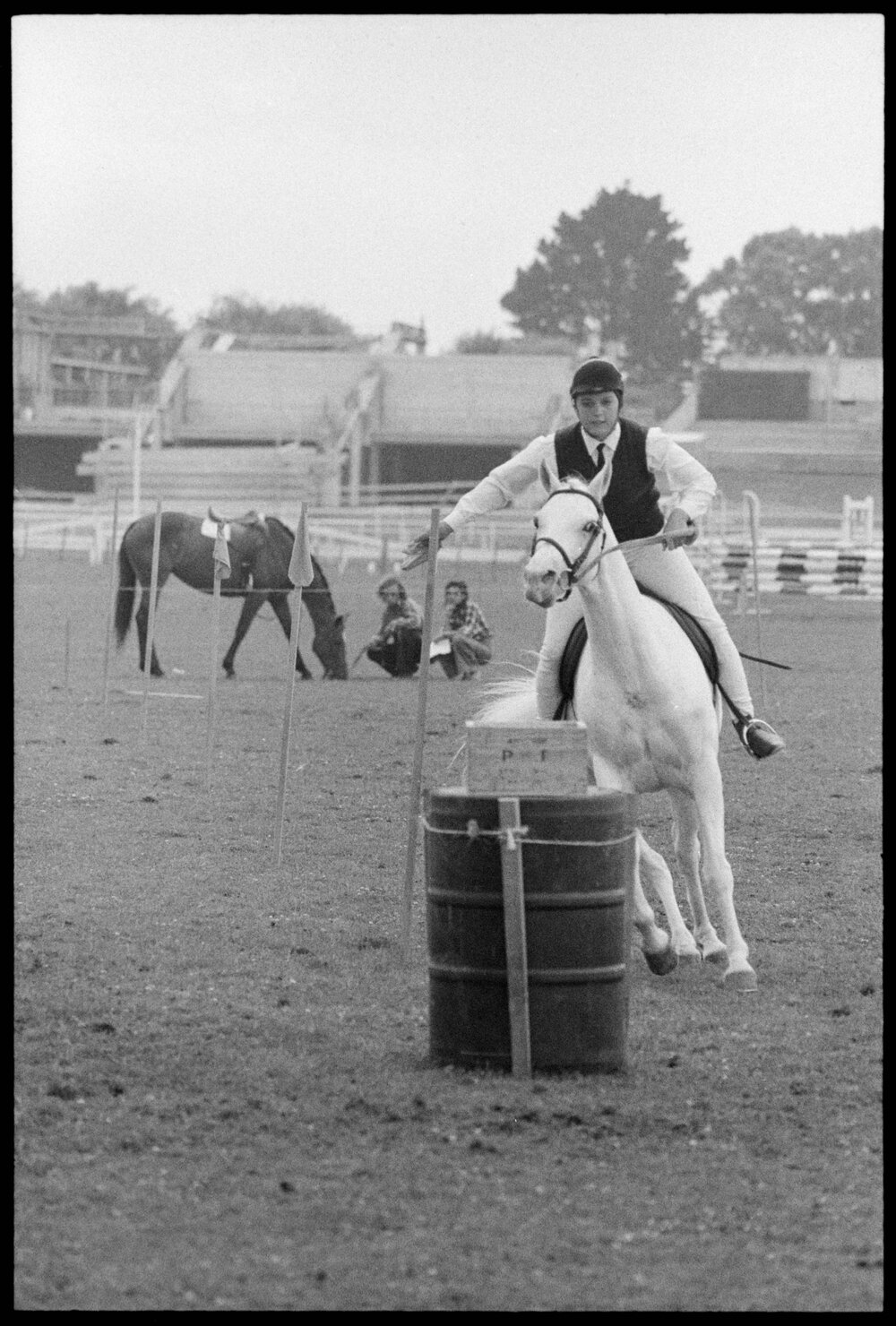 Date23 December 1974Reference Numberphoto gcc-31352DescriptionA rider competes in the 12-to-Under-14 years flag race in the Auckland Provincial Pony Clubs Rider Championship. Published 23 December 1974.FormatNegativePhysical Description35mm black-and-white negative (7/15)Photographer/CreatorBay of Plenty Times