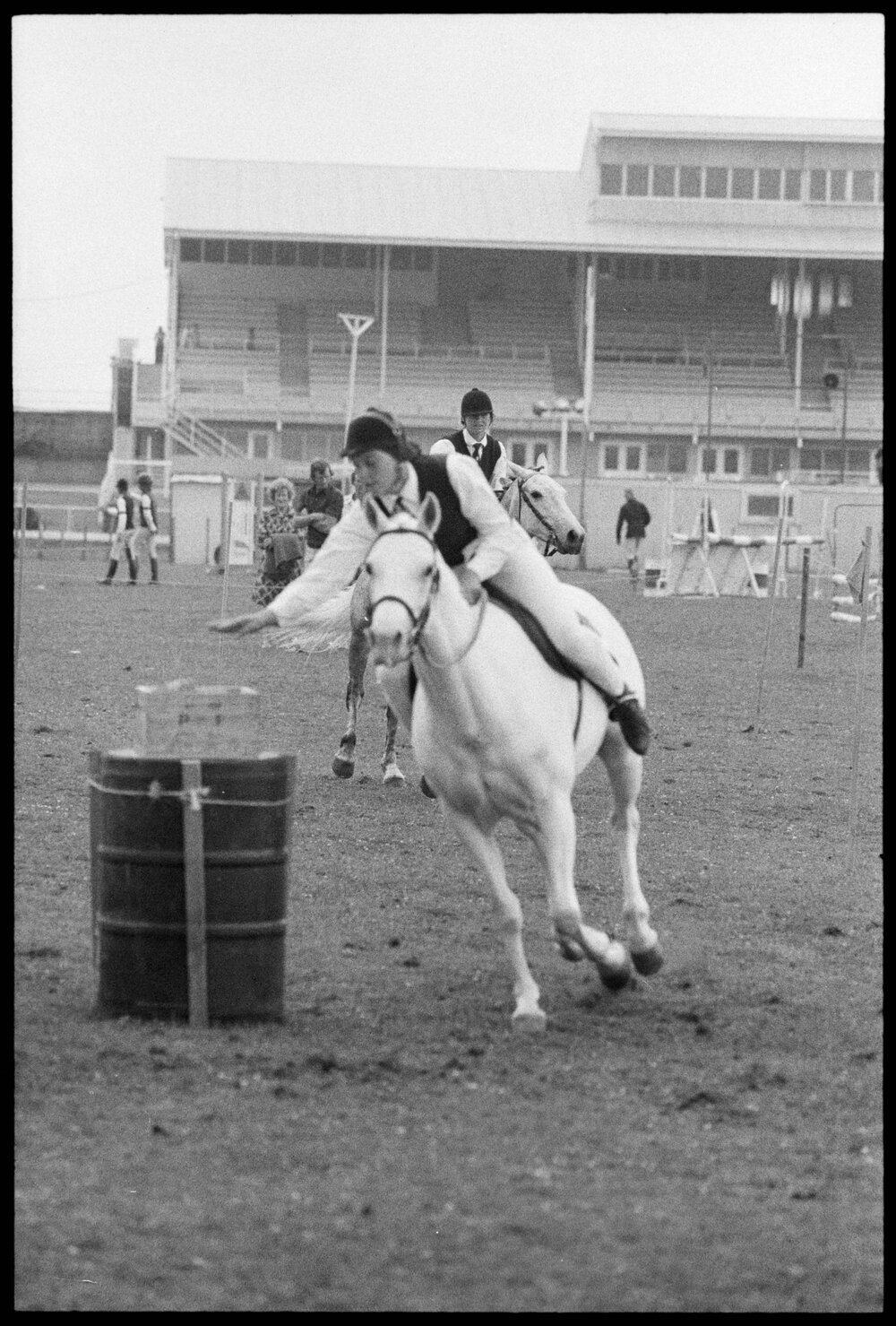Date23 December 1974Reference Numberphoto gcc-31353DescriptionA rider competes in the 12-to-Under-14 years flag race in the Auckland Provincial Pony Clubs Rider Championship. Published 23 December 1974.FormatNegativePhysical Description35mm black-and-white negative (8/15)Photographer/CreatorBay of Plenty Times