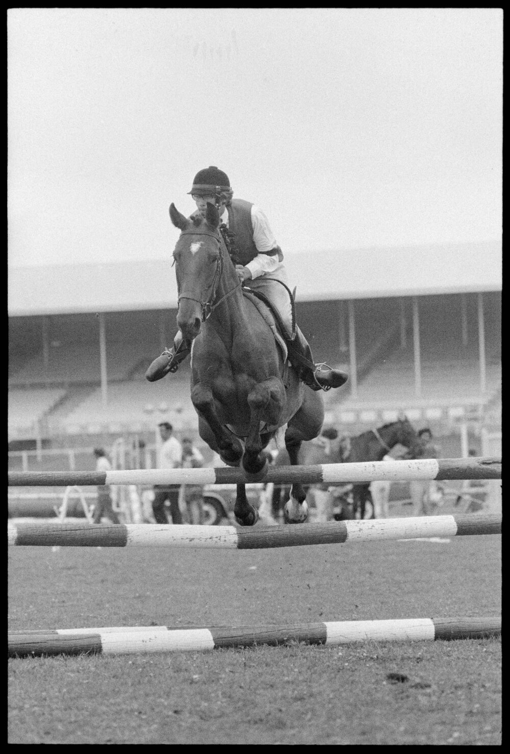 Date23 December 1974Reference Numberphoto gcc-31355DescriptionA rider competes in the 12-to-Under-14 years jumping event in the Auckland Provincial Pony Clubs Rider Championship. Published 23 December 1974.FormatNegativePhysical Description35mm black-and-white negative (10/15)Photographer/CreatorBay of Plenty Times