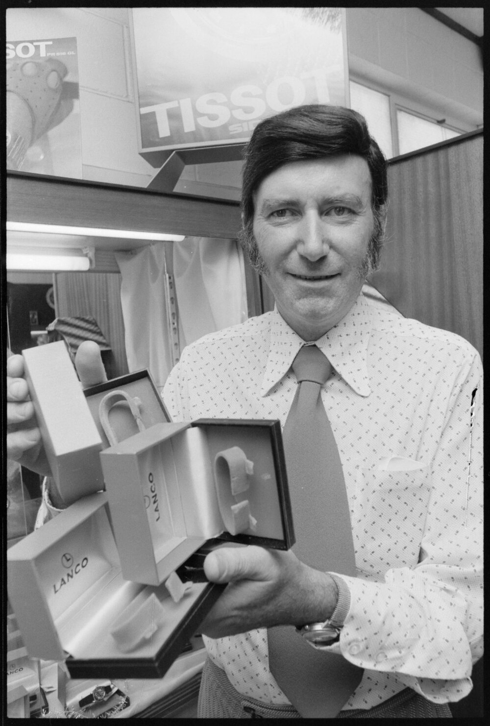 Date23 December 1974Reference Numberphoto gcc-31361DescriptionMr Stewart displays watch boxes which were full when he left his shop which had disappeared along with about $20,000 worth of rings and brooches. Published 23 December 1974.FormatNegativePhysical Description35mm black-and-white negative (1/3)Photographer/CreatorBay of Plenty Times