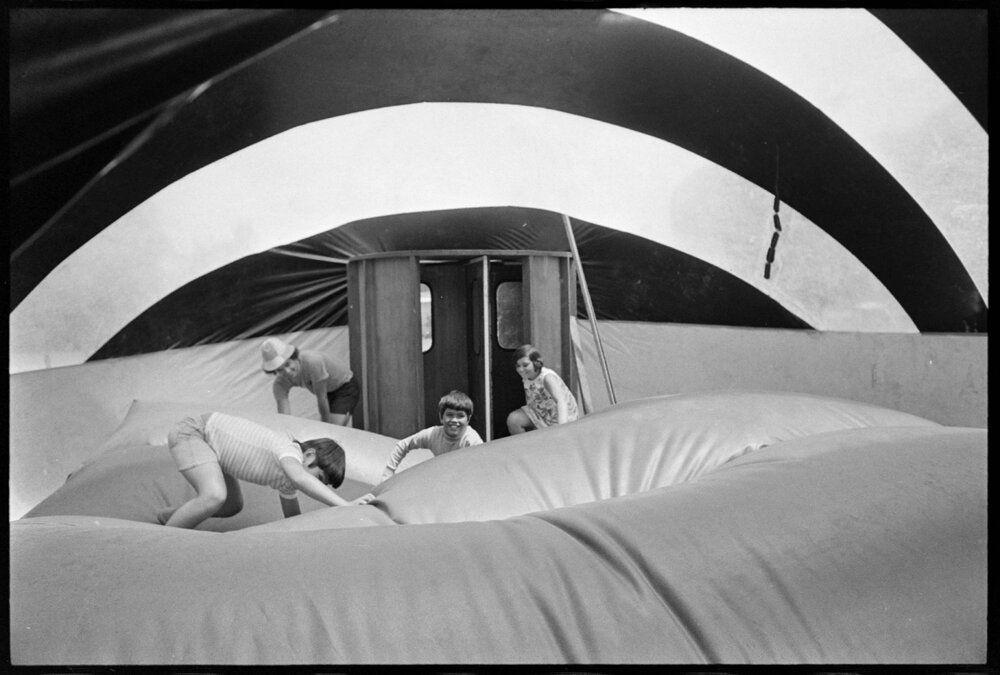 Date28 December 1974Reference Numberphoto gcc-31419DescriptionThe fairground at Memorial Park includes a new attraction called Sammy the Snail. It is billed as giving 'the same sensation as bouncing on the moon' and testing it were (from left) Endora Cleverly, and Troy and Nigel Tuatara.Published 28 December 1974.FormatNegativePhysical Description35mm black-and-white negative (4/9)Photographer/CreatorBay of Plenty Times