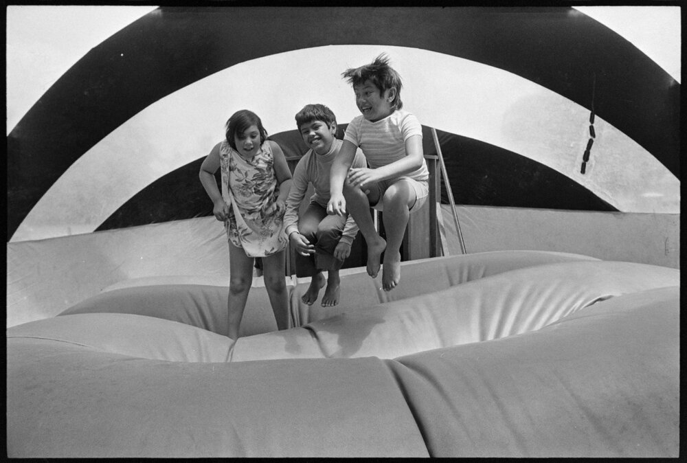 Date28 December 1974Reference Numberphoto gcc-31424DescriptionThe fairground at Memorial Park includes a new attraction called Sammy the Snail. It is billed as giving 'the same sensation as bouncing on the moon' and testing it were (from left) Endora Cleverly, and Troy and Nigel Tuatara.Published 28 December 1974.FormatNegativePhysical Description35mm black-and-white negative (9/9)Photographer/CreatorBay of Plenty Times
