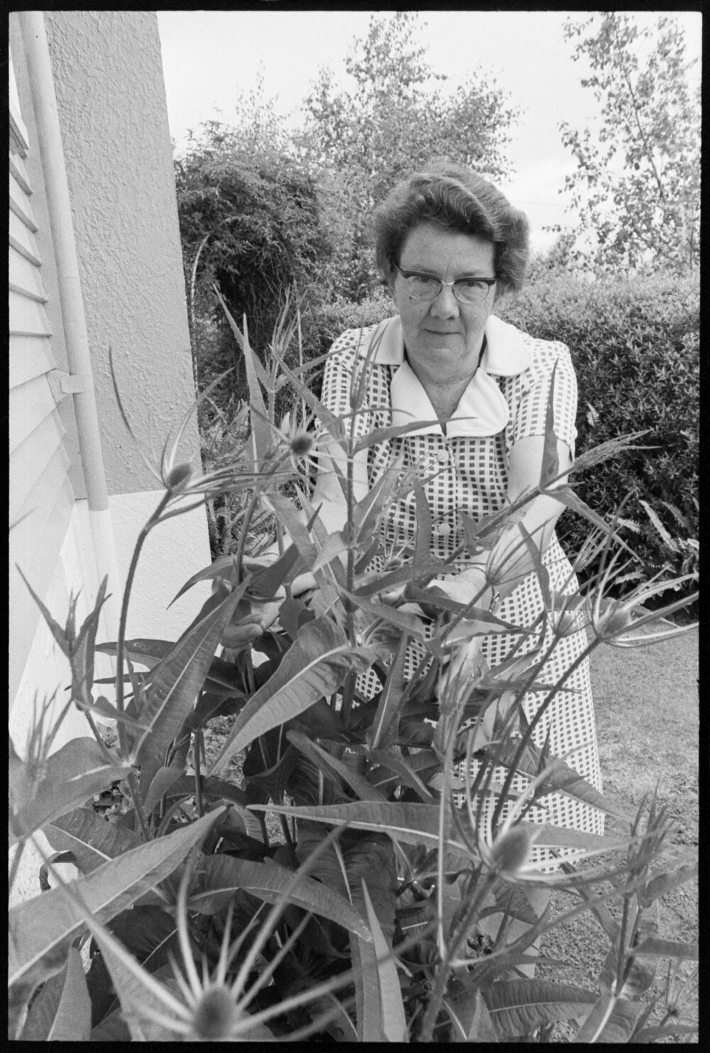 Date31 December 1974Reference Numberphoto gcc-31464DescriptionA plant found in the garden of Mrs P. E. Thomasen has yet to be identified. Published 31 December 1974.FormatNegativePhysical Description35mm black-and-white negative (4/6)Photographer/CreatorBay of Plenty Times