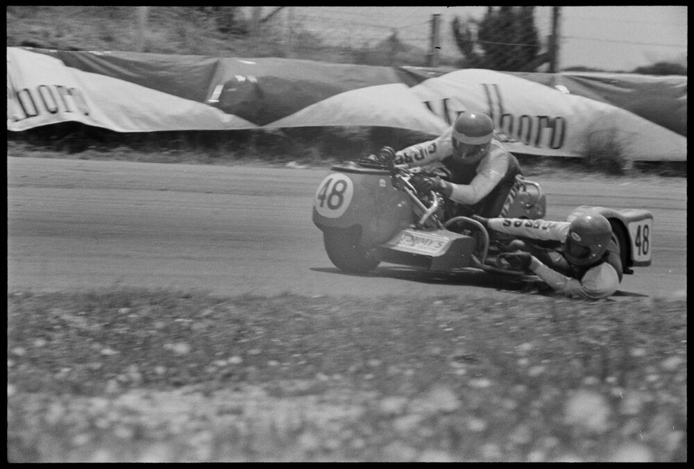 Date2 January 1975Reference Numberphoto gcc-31498DescriptionRiders in the first motorcycle sidecar race at Mount Maunganui’s Bay Park Raceway on New Year’s Eve. Published 2 January 1975.FormatNegativePhysical Description35mm black-and-white negative (2/27)Photographer/CreatorBay of Plenty Times