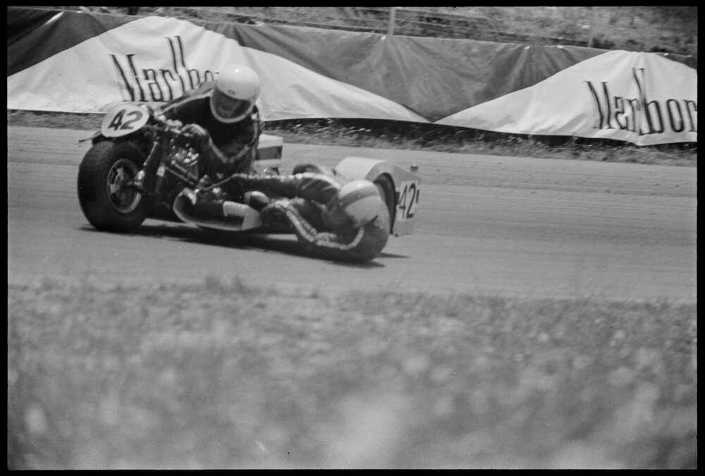 Date2 January 1975Reference Numberphoto gcc-31500DescriptionRiders in the first motorcycle sidecar race at Mount Maunganui’s Bay Park Raceway on New Year’s Eve. Published 2 January 1975.FormatNegativePhysical Description35mm black-and-white negative (4/27)Photographer/CreatorBay of Plenty Times