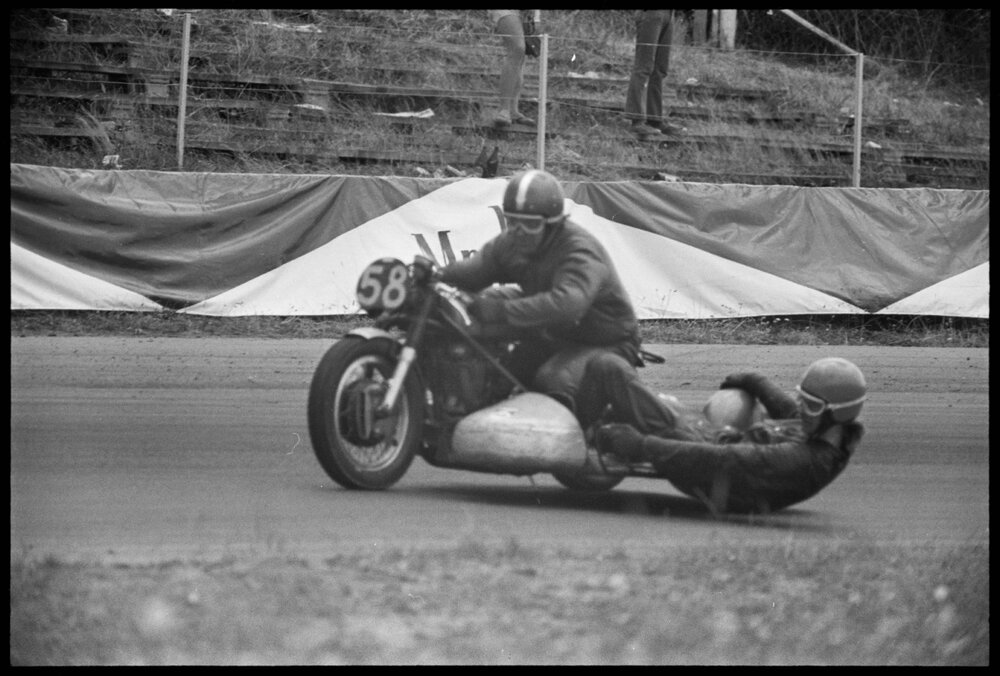 Date2 January 1975Reference Numberphoto gcc-31507DescriptionRiders in the first motorcycle sidecar race at Mount Maunganui’s Bay Park Raceway on New Year’s Eve. Published 2 January 1975.FormatNegativePhysical Description35mm black-and-white negative (11/27)Photographer/CreatorBay of Plenty Times
