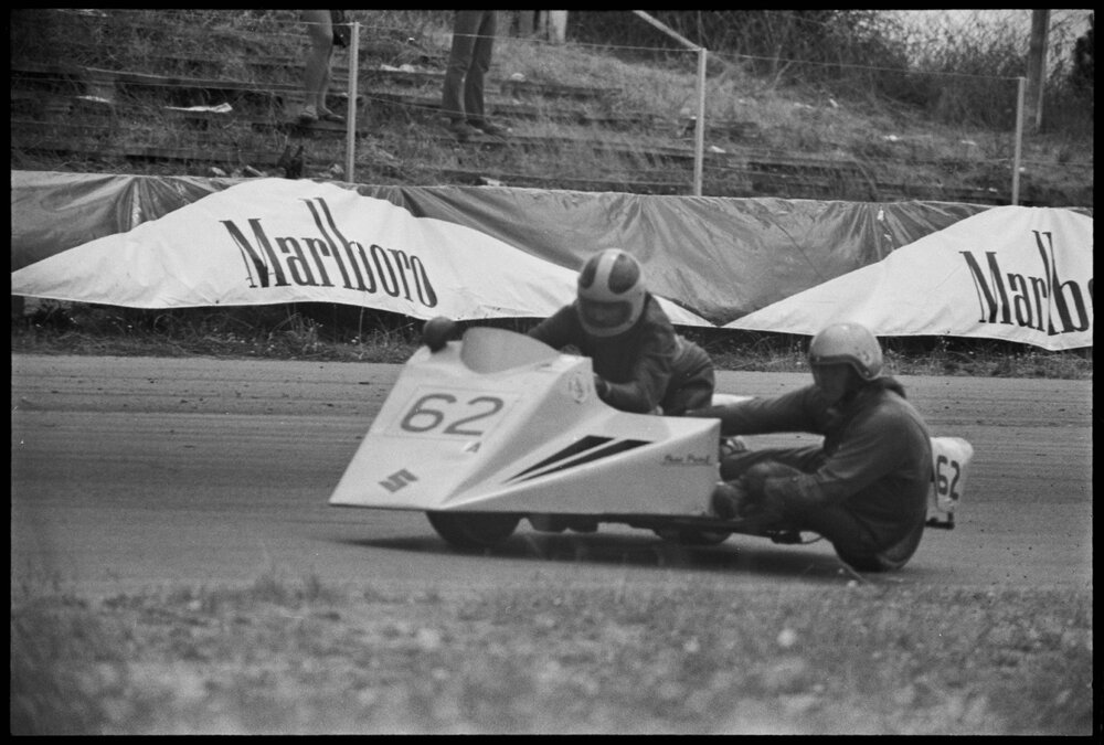 Date2 January 1975Reference Numberphoto gcc-31508DescriptionRiders in the first motorcycle sidecar race at Mount Maunganui’s Bay Park Raceway on New Year’s Eve. Published 2 January 1975.FormatNegativePhysical Description35mm black-and-white negative (12/27)Photographer/CreatorBay of Plenty Times