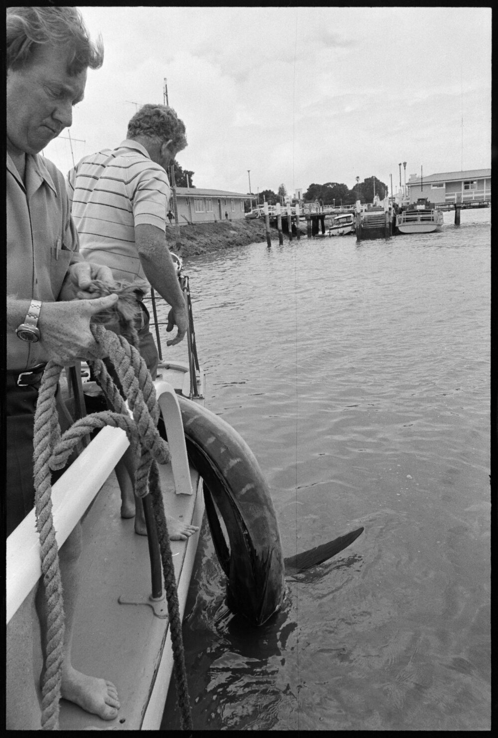 Date2 January 1975Reference Numberphoto gcc-31537DescriptionJohn Boyle, of Tauranga, who landed the 398 lb marlin on 130 lb gear. A world record claim for it will be lodged by the Tauranga Big Game Fishing Club. Published 2 January 1975.FormatNegativePhysical Description35mm black-and-white negative (14/14)Photographer/CreatorBay of Plenty Times