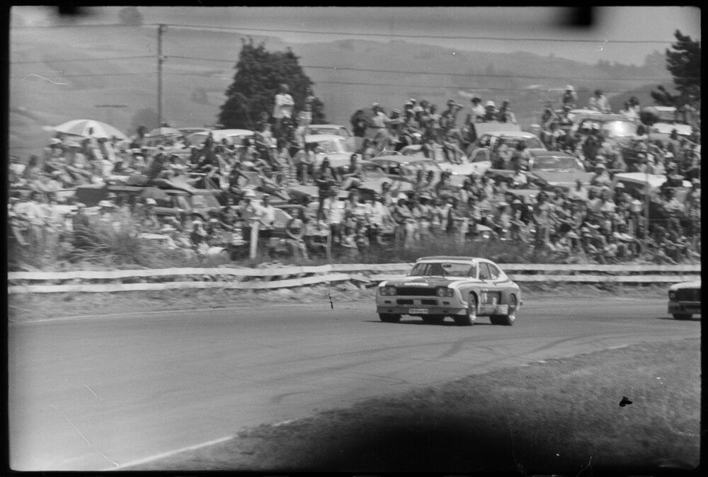 Date3 January 1975Reference Numberphoto gcc-31567DescriptionJim Richards in the last of the "Big Banger" races at Bay Park Raceway's international meeting. Dawsons motor let out a cloud of white smoke here on the next lap as he left the corner at near 120 m.p.h. He pitted for the rest of the race. Published 3 January 1975.FormatNegativePhysical Description35mm black-and-white negative (1/3)Photographer/CreatorBay of Plenty Times
