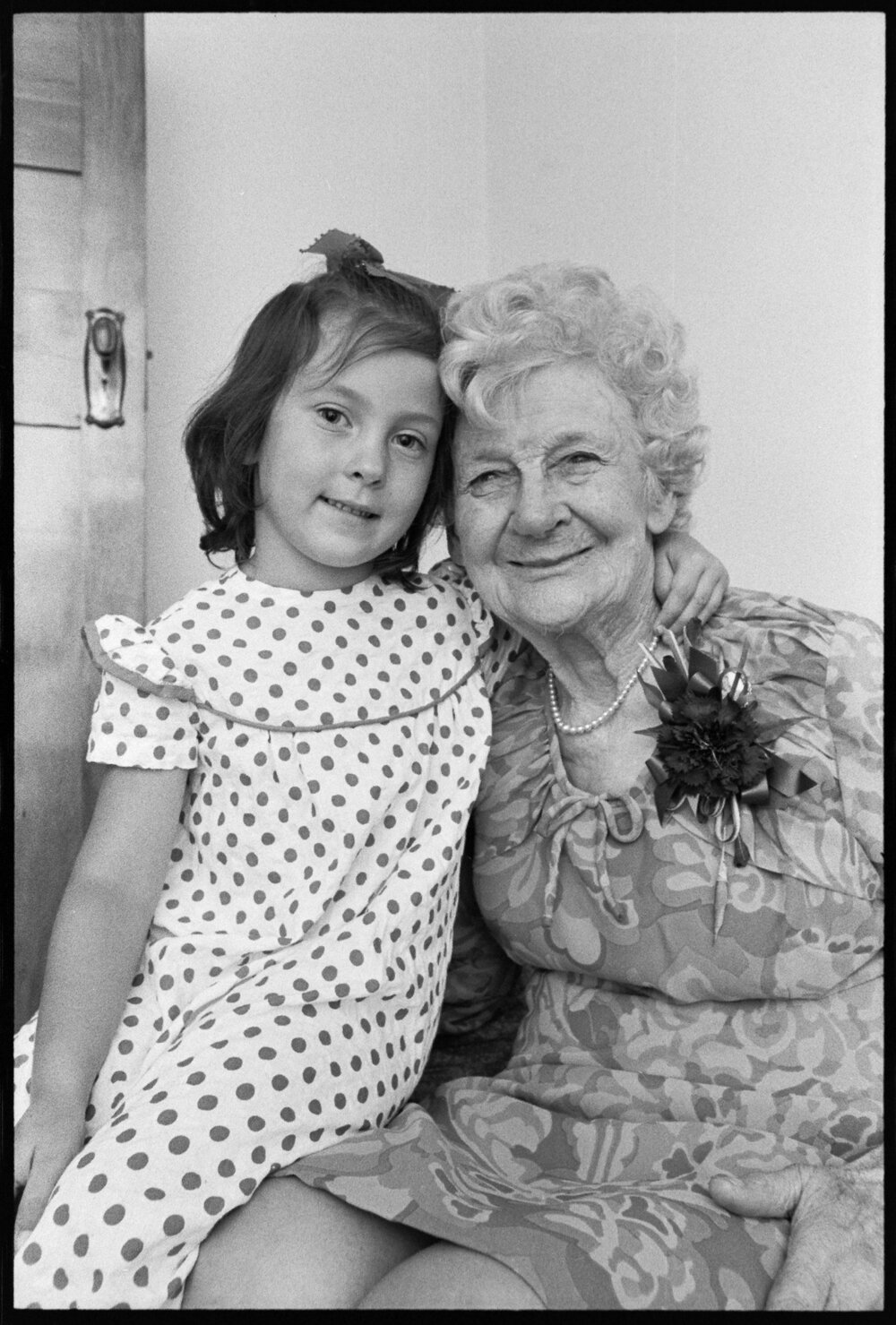 Date6 January 1975Reference Numberphoto gcc-31632DescriptionMrs Queenie Bell with great grandchild, five-year-old, Angela Bell, during the 90th birthday celebrations in Mrs Bell's honour. Published 6 January 1975.FormatNegativePhysical Description35mm black-and-white negative (5/6)Photographer/CreatorBay of Plenty Times
