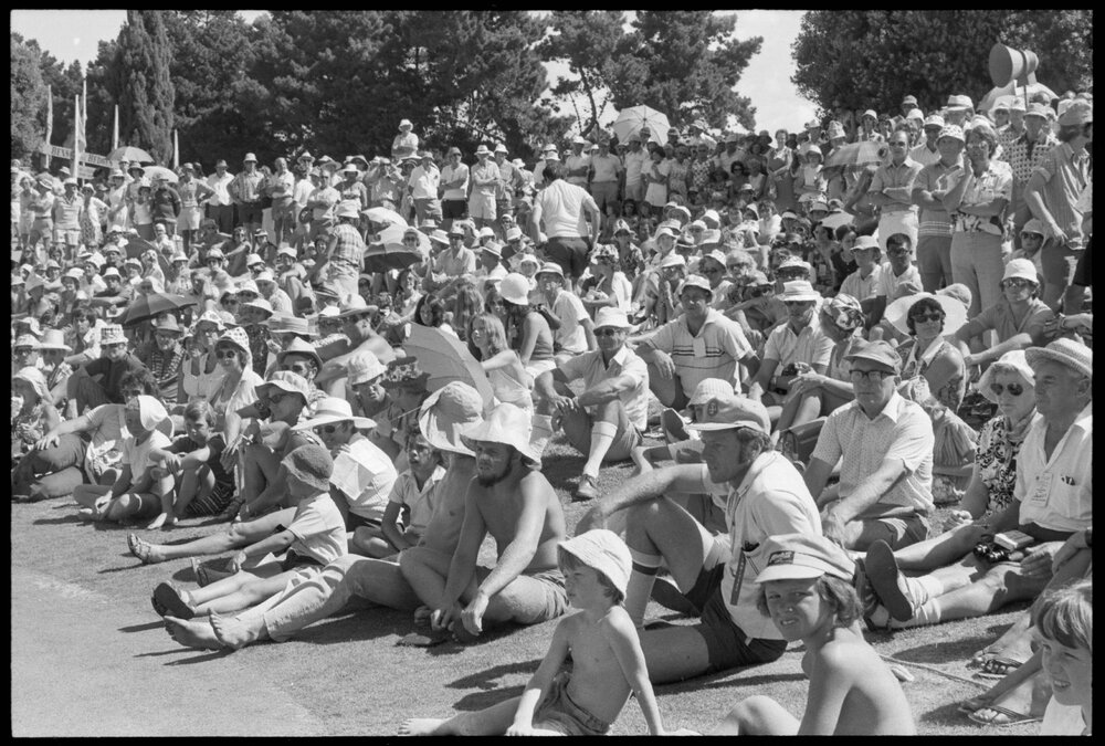 Date6 January 1975Reference Numberphoto gcc-31641DescriptionSpectators at the New Zealand Professional Golfers Association championship at Mount Maunganui. Published 6 January 1975.FormatNegativePhysical Description35mm black-and-white negative (2/6)Photographer/CreatorBay of Plenty Times