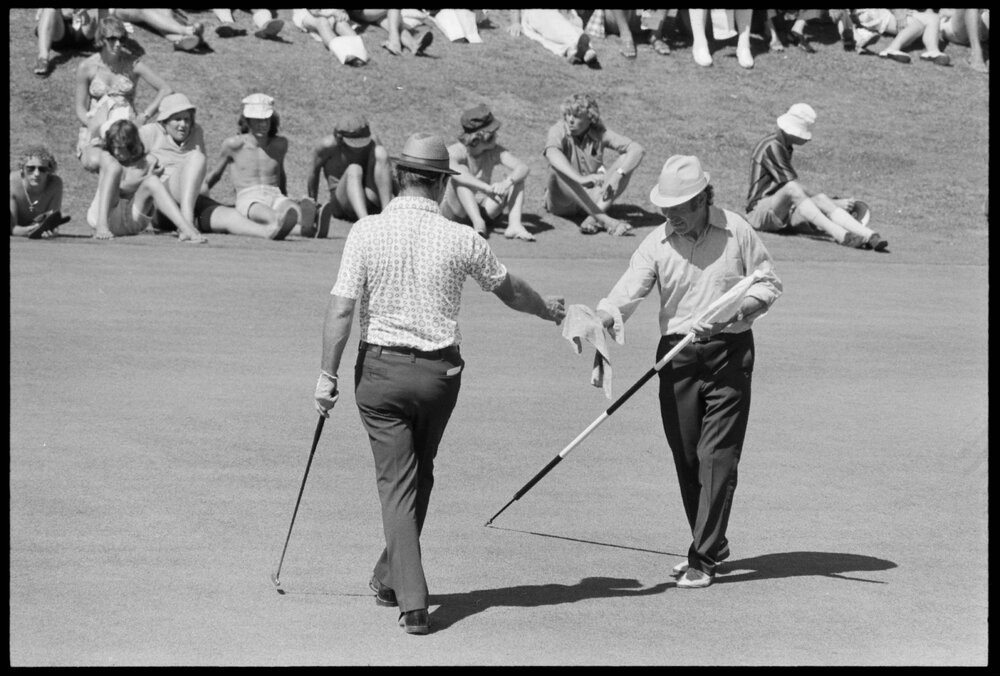 Date6 January 1975Reference Numberphoto gcc-31645DescriptionDefending champion Kel Nagle, (left) of Australia, achieves victory in the New Zealand Professional Golfers Association championship at Mount Maunganui. Published 6 January 1975.FormatNegativePhysical Description35mm black-and-white negative (6/6)Photographer/CreatorBay of Plenty Times