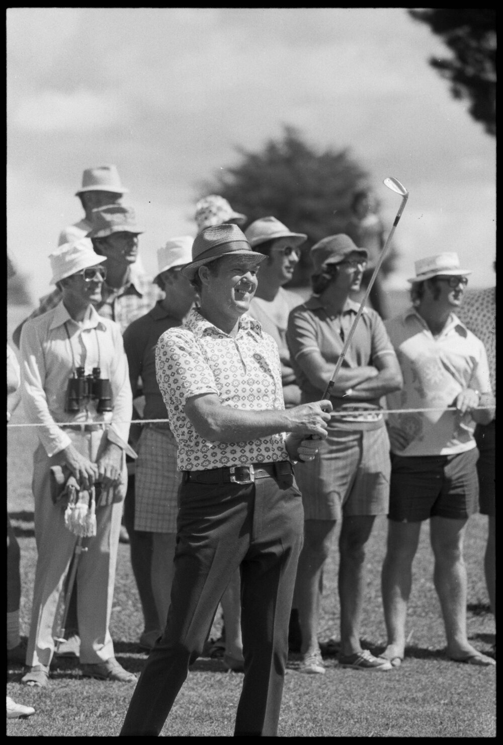Date6 January 1975Reference Numberphoto gcc-31648DescriptionDefending champion Kel Nagle, of Australia, achieves victory in the New Zealand Professional Golfers Association championship at Mount Maunganui. Published 6 January 1975.FormatNegativePhysical Description35mm black-and-white negative (3/12)Photographer/CreatorBay of Plenty Times