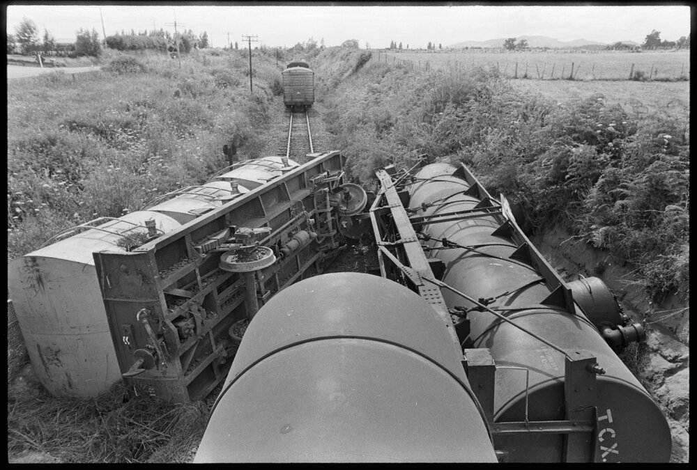 Date6 January 1975Reference Numberphoto gcc-31676DescriptionDerailed wagons at the site of the rail accident at Pongakawa. Published 6 January 1975.FormatNegativePhysical Description35mm black-and-white negative (5/6)Photographer/CreatorBay of Plenty Times