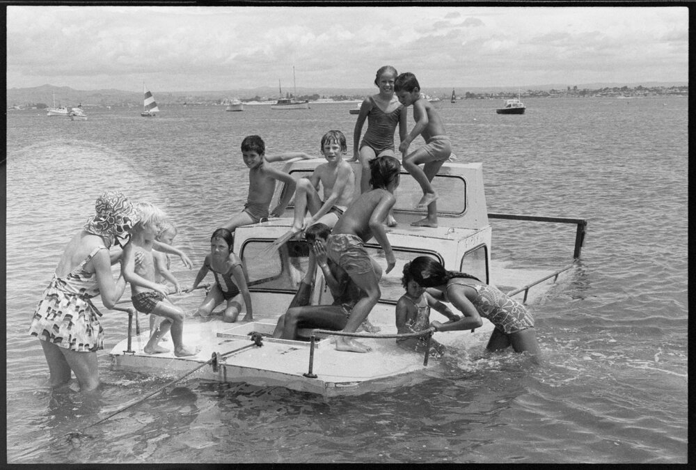 Date8 January 1975Reference Numberphoto gcc-31707DescriptionChildren at Pilot Bay, playing on top of a boat. Published 8 January 1975.FormatNegativePhysical Description35mm black-and-white negative (1/6)Photographer/CreatorBay of Plenty Times