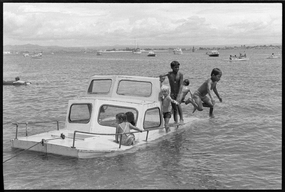 Date8 January 1975Reference Numberphoto gcc-31710DescriptionChildren at Pilot Bay, playing on top of a boat. Published 8 January 1975.FormatNegativePhysical Description35mm black-and-white negative (4/6)Photographer/CreatorBay of Plenty Times