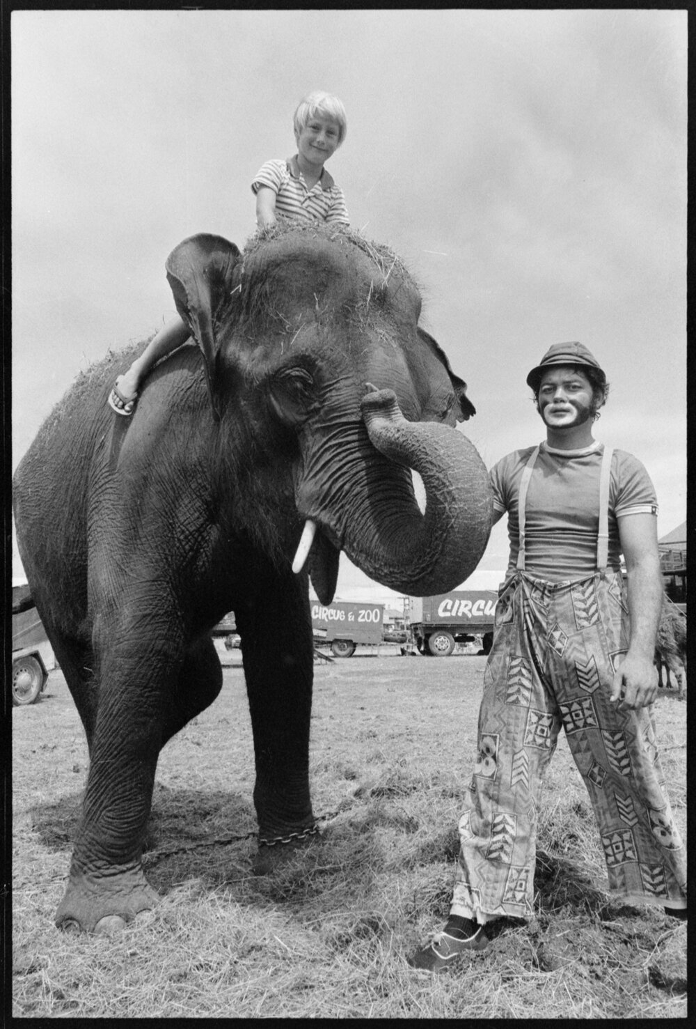 Date9 January 1975Reference Numberphoto gcc-31734DescriptionBimbo, a 12-year-old Malaysian elephant from the Ridgeway Circus, is persuaded by Oscar the Clown to give Mark Alderson, of Dannevirke a ride at Mount Maunganui. Published 9 January 1975.FormatNegativePhysical Description35mm black-and-white negative (1/6)Photographer/CreatorBay of Plenty Times