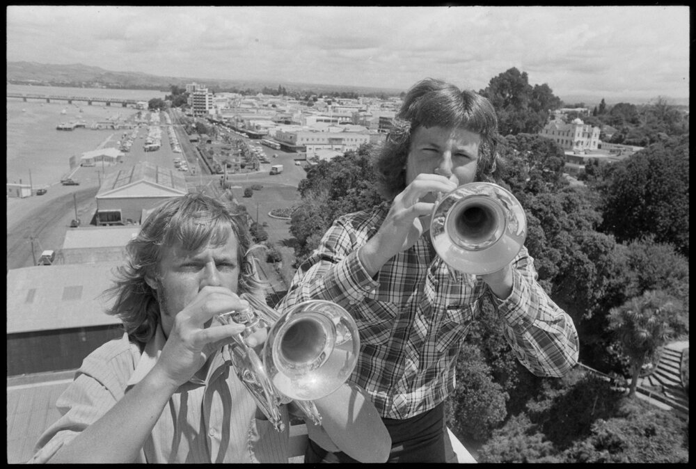Date9 January 1975Reference Numberphoto gcc-31741DescriptionTauranga musicians, John (left) and Peter Rodgers, put in some practice for their forthcoming tour with the National Youth Band of New Zealand. They will be performing at the Tauranga Soundshell later this month. Published 9 January 1975FormatNegativePhysical Description35mm black-and-white negative (2/9)Photographer/CreatorBay of Plenty Times