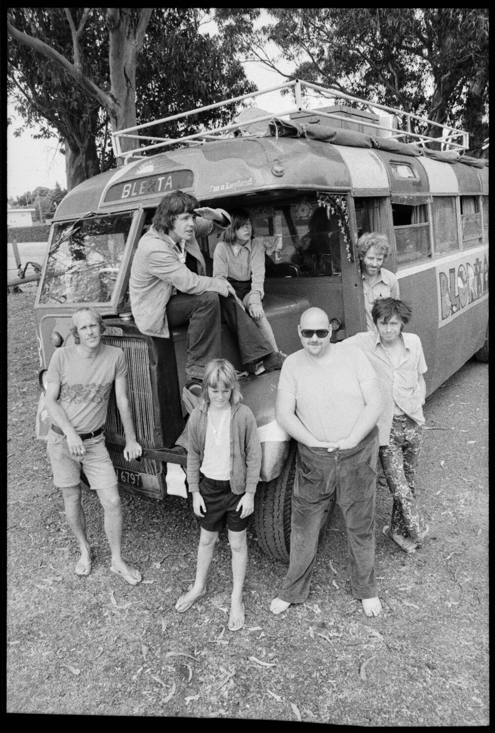 Date10 January 1975Reference Numberphoto gcc-31749DescriptionSome members of the 43-member Blerta rock group stand outside their old 1948 bus. The group is currently touring New Zealand in the bus for the fourth time. Published 10 January 1975.FormatNegativePhysical Description35mm black-and-white negative (1/9)Photographer/CreatorBay of Plenty Times