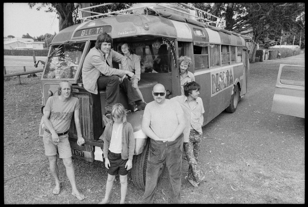 Date10 January 1975Reference Numberphoto gcc-31751DescriptionSome members of the 43-member Blerta rock group stand outside their old 1948 bus. The group is currently touring New Zealand in the bus for the fourth time. Published 10 January 1975.FormatNegativePhysical Description35mm black-and-white negative (3/9)Photographer/CreatorBay of Plenty Times