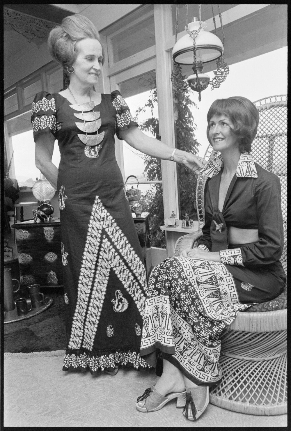 Date10 January 1975Reference Numberphoto gcc-31763DescriptionIndonesian batik will be worn at Mrs de Roo's fashion parade. She spent four years in Indonesia. With Mrs de Roo (left) is model Mrs Evelyn Page. Published 10 January 1975.FormatNegativePhysical Description35mm black-and-white negative (6/6)Photographer/CreatorBay of Plenty Times