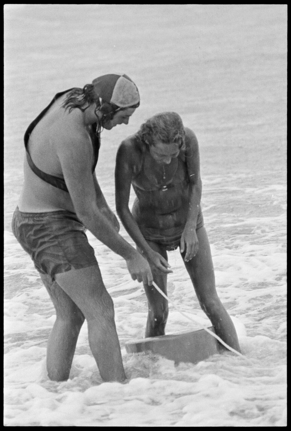 Date11 January 1975Reference Numberphoto gcc-31780DescriptionA simulated rescue sequence using a neoprene tube is conducted by Bay of Plenty Times reporter, Miss Alison Gower, and one of Mount Maunganui's two paid beach lifeguards, Trevor Guthrie. Published 11 January 1975.FormatNegativePhysical Description35mm black-and-white negative (2/2)Photographer/CreatorBay of Plenty Times