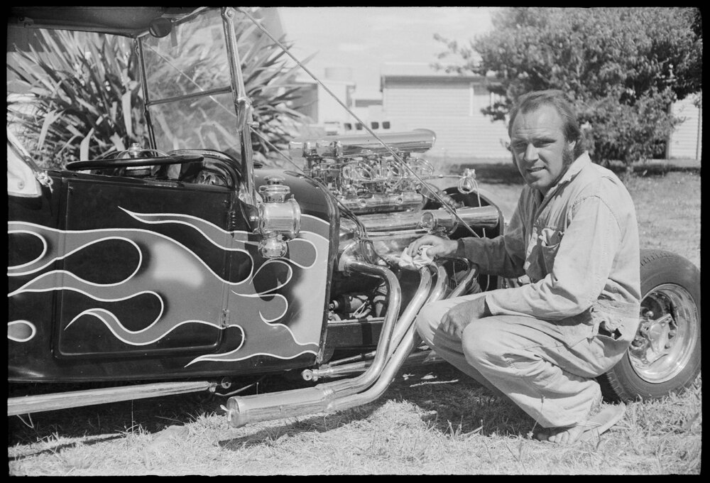 Date13 January 1975Reference Numberphoto gcc-31827DescriptionTerry Furness, a member of Tauranga-based Bay Rodders, with his award-winning customised Model T Ford "bucket." at the recent National Hot Rod show in Napier. Published 13 January 1975.FormatNegativePhysical Description35mm black-and-white negative (1/6)Photographer/CreatorBay of Plenty Times