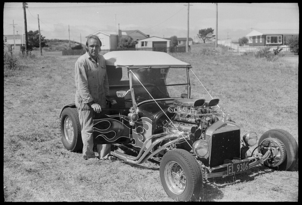Date13 January 1975Reference Numberphoto gcc-31829DescriptionTerry Furness, a member of Tauranga-based Bay Rodders, with his award-winning customised Model T Ford "bucket." at the recent National Hot Rod show in Napier. Published 13 January 1975.FormatNegativePhysical Description35mm black-and-white negative (3/6)Photographer/CreatorBay of Plenty Times