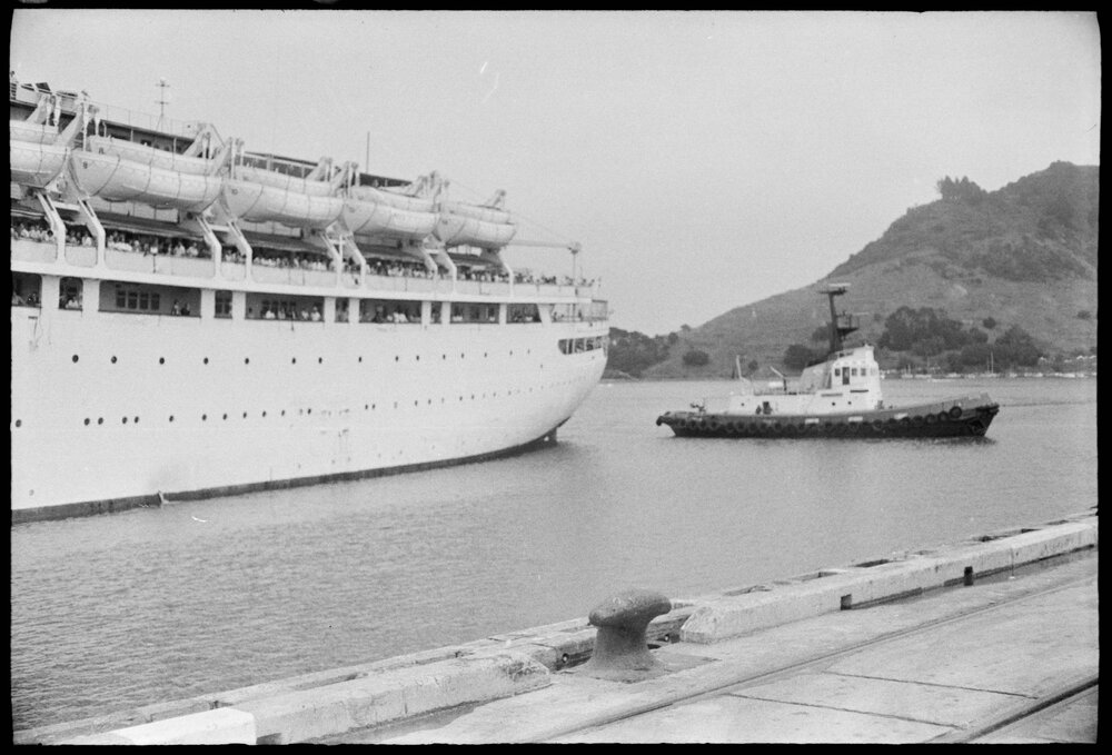 Date13 January 1975Reference Numberphoto gcc-31830DescriptionVessel "Fairsky" in Tauranga Harbour with a Pilot boat nearby. Published 13 January 1975.FormatNegativePhysical Description35mm black-and-white negative (4/6)Photographer/CreatorBay of Plenty Times