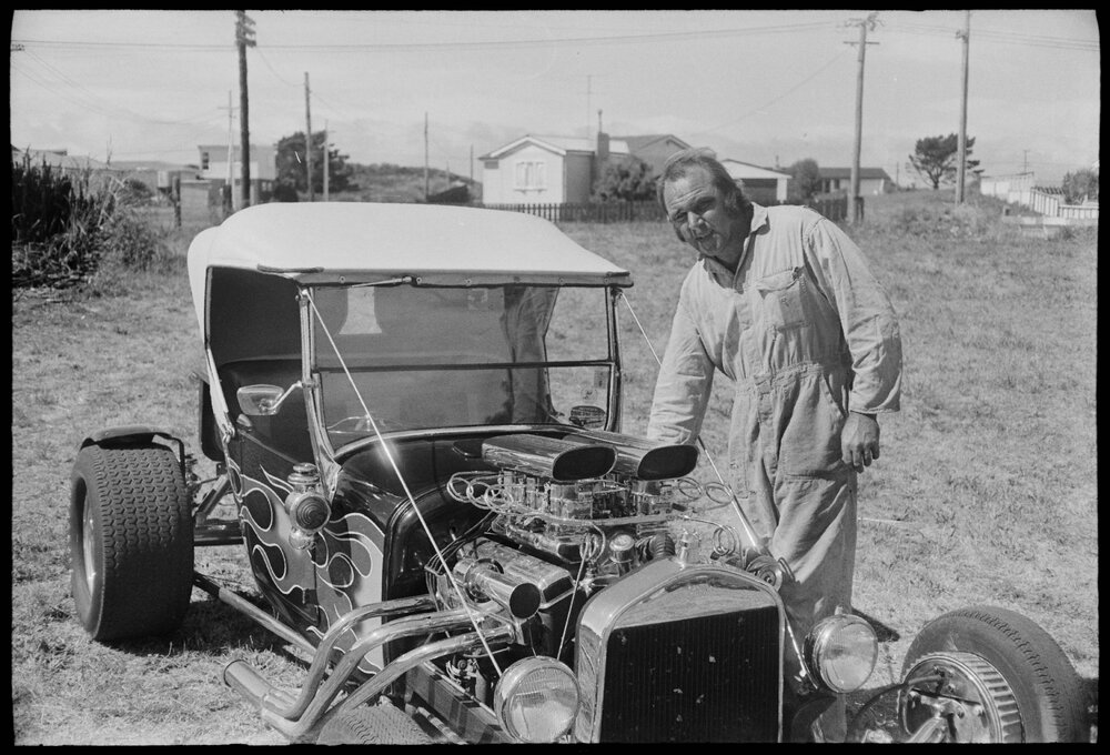 Date13 January 1975Reference Numberphoto gcc-31832DescriptionTerry Furness, a member of Tauranga-based Bay Rodders, with his award-winning customised Model T Ford "bucket." at the recent National Hot Rod show in Napier. Published 13 January 1975.FormatNegativePhysical Description35mm black-and-white negative (6/6)Photographer/CreatorBay of Plenty Times