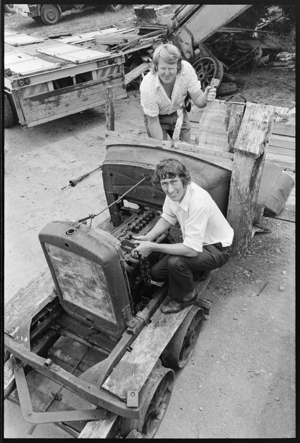Date14 January 1975Reference Numberphoto gcc-31860DescriptionThis 40-year-old railway machine which once carried men to and from the Ngaroma Bush is being inspected by Kevin Nisbet (foreground) vice-president of the Tauranga Jaycees, and Mr Ken Ward, convener of a Jaycee project to restore the machine for the Tauranga District Museum. Published 14 January 1975.FormatNegativePhysical Description35mm black-and-white negative (3/6)Photographer/CreatorBay of Plenty Times