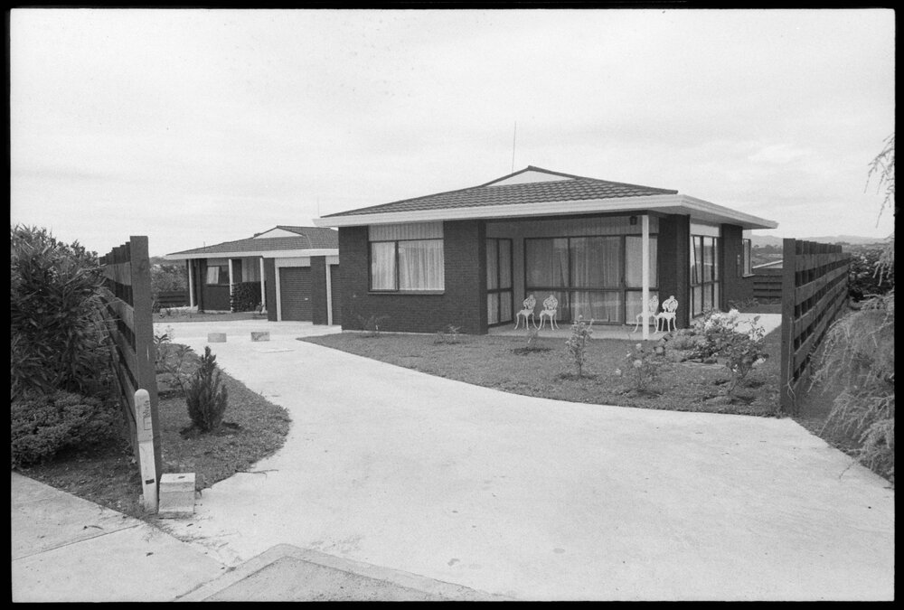 Date14 January 1975Reference Numberphoto gcc-31867DescriptionTwo new looking, brick homes viewed from the driveway. Published 14 January 1975.FormatNegativePhysical Description35mm black-and-white negative (1/6)Photographer/CreatorBay of Plenty Times