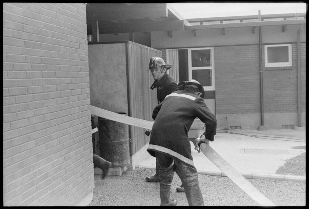 Date15 January 1975Reference Numberphoto gcc-31880DescriptionFire fighters at a Melrose Home fire drill. Published 15 January 1975.FormatNegativePhysical Description35mm black-and-white negative (1/12)Photographer/CreatorBay of Plenty Times