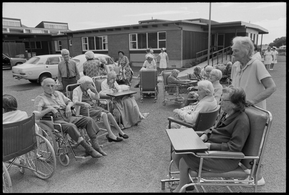 Date15 January 1975Reference Numberphoto gcc-31887DescriptionResidents evacuate at a Melrose Home fire drill. Published 15 January 1975.FormatNegativePhysical Description35mm black-and-white negative (8/12)Photographer/CreatorBay of Plenty Times