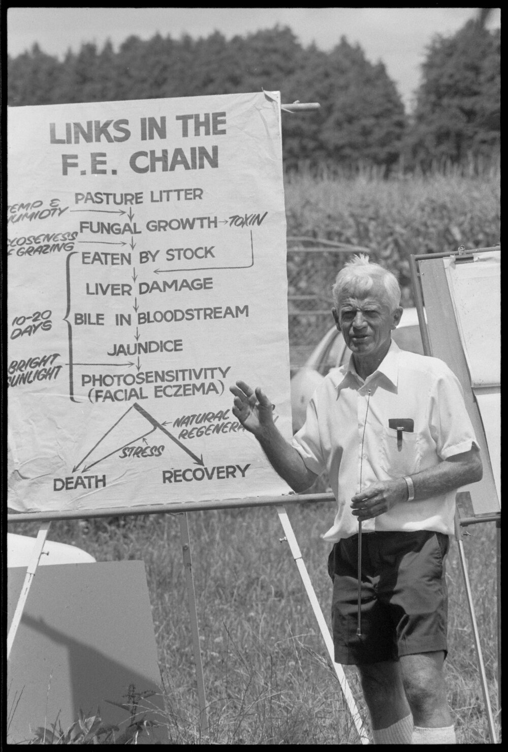Date16 January 1975Reference Numberphoto gcc-31921DescriptionMr J. B. Swan, a Department of Agriculture and Fisheries officer, explains the progression of a facial eczema outbreak at a field day for farmers, Matahui Road, Katikati. Published 16 January 1975.FormatNegativePhysical Description35mm black-and-white negative (4/6)Photographer/CreatorBay of Plenty Times