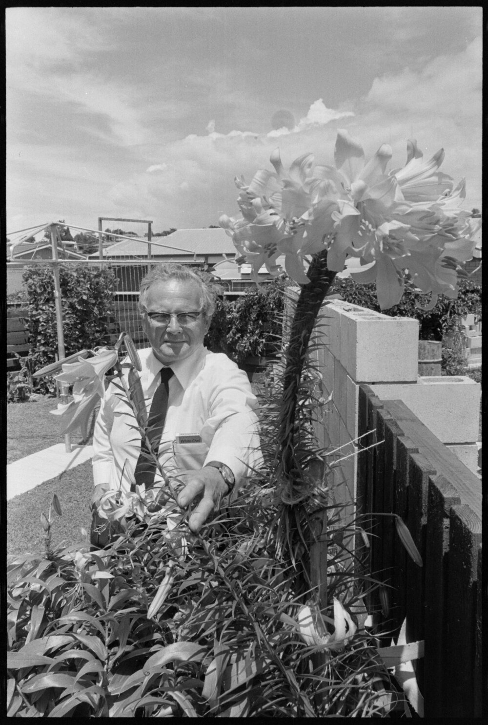 Date16 January 1975Reference Numberphoto gcc-31936DescriptionAn abnormal lily with 27 heads on the one stalk instead of the usual four or five is growing in the garden of Mr H. T. Genese. Published 16 January 1975.FormatNegativePhysical Description35mm black-and-white negative (1/9)Photographer/CreatorBay of Plenty Times