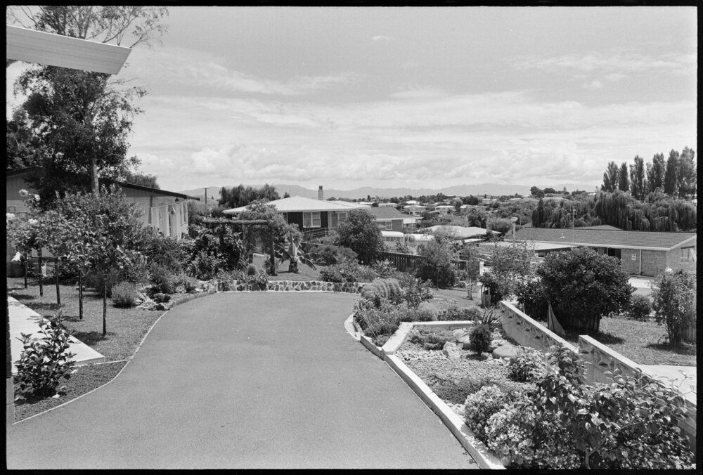 Date16 January 1975Reference Numberphoto gcc-31938DescriptionView from the top of a driveway towards a residential suburb. Possibly associated with photo gcc-31937. Published 16 January 1975.FormatNegativePhysical Description35mm black-and-white negative (3/9)Photographer/CreatorBay of Plenty Times