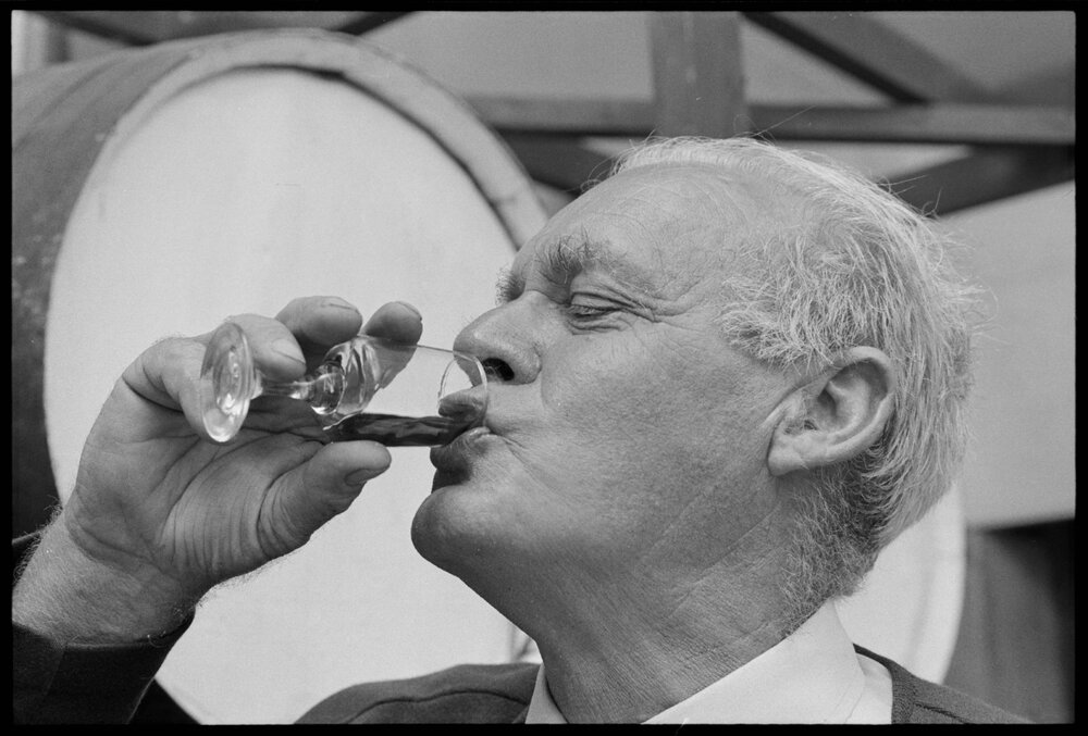 Date17 January 1975Reference Numberphoto gcc-31962DescriptionDairy farmer Mr. E. W. Bragg, who has farmed on the Maketū-Paengaroa Road for 40 years started experimenting with making wine over 20 years ago, trying various types including parsnip and kiwifruit wine. Despite many unsuccessful attempts, he continued at the instigation of his wife. He samples the wine, standing near one of the barrels. Published 17 January 1975.FormatNegativePhysical Description35mm black-and-white negative (1/6)Photographer/CreatorBay of Plenty Times