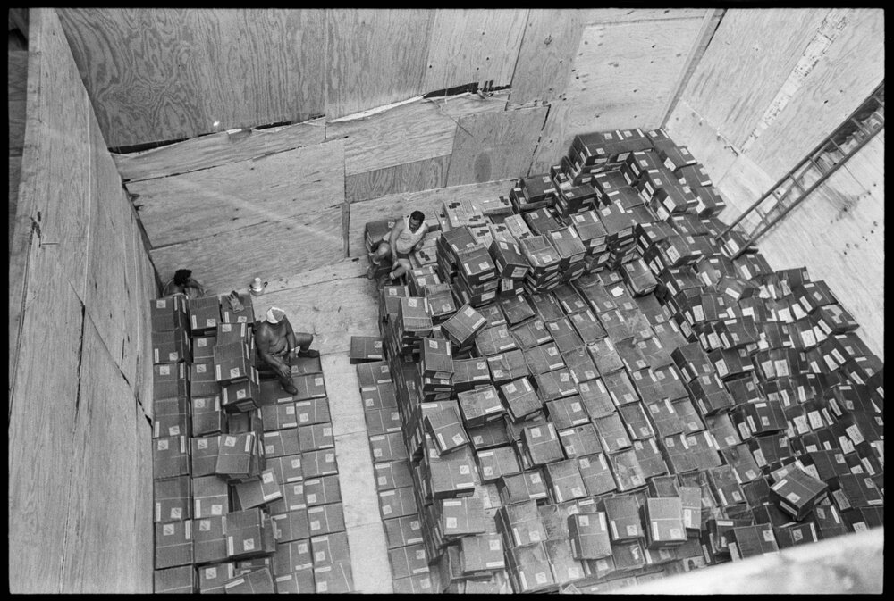 Date18 January 1975Reference Numberphoto gcc-32029DescriptionWatersiders take a breather in the middle of what is left of the 200 tons of high explosives stored in the hold of the Golden Jade. Published 18 January 1975.FormatNegativePhysical Description35mm black-and-white negative (1/3)Photographer/CreatorBay of Plenty Times