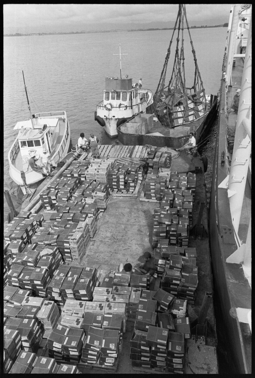 Date18 January 1975Reference Numberphoto gcc-32034DescriptionA barge alongside the ship ready for a netful of high explosive during unloading of the Golden Jade. Published 18 January 1975.FormatNegativePhysical Description35mm black-and-white negative (3/3)Photographer/CreatorBay of Plenty Times