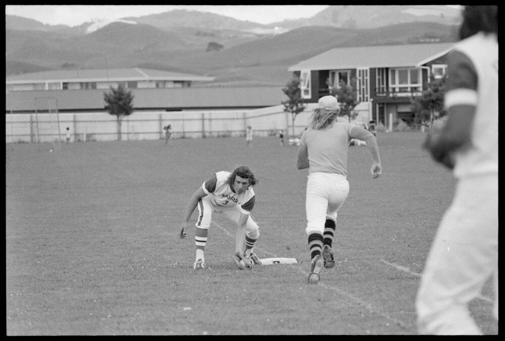 Date20 January 1975Reference Numberphoto gcc-32084DescriptionDodgers vs Greerton in an interclub mens softball match. Dodgers had to score five runs in its final innings to win 10-9. Published 20 January 1975.FormatNegativePhysical Description35mm black-and-white negative (1/3)Photographer/CreatorBay of Plenty Times