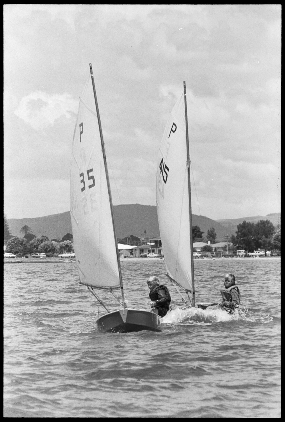 Date20 January 1975Reference Numberphoto gcc-32099DescriptionSpray flies as P class yachts battle during a Tauranga Yacht and Power Boat Club race. Published 20 January 1975.FormatNegativePhysical Description35mm black-and-white negative (3/15)Photographer/CreatorBay of Plenty Times