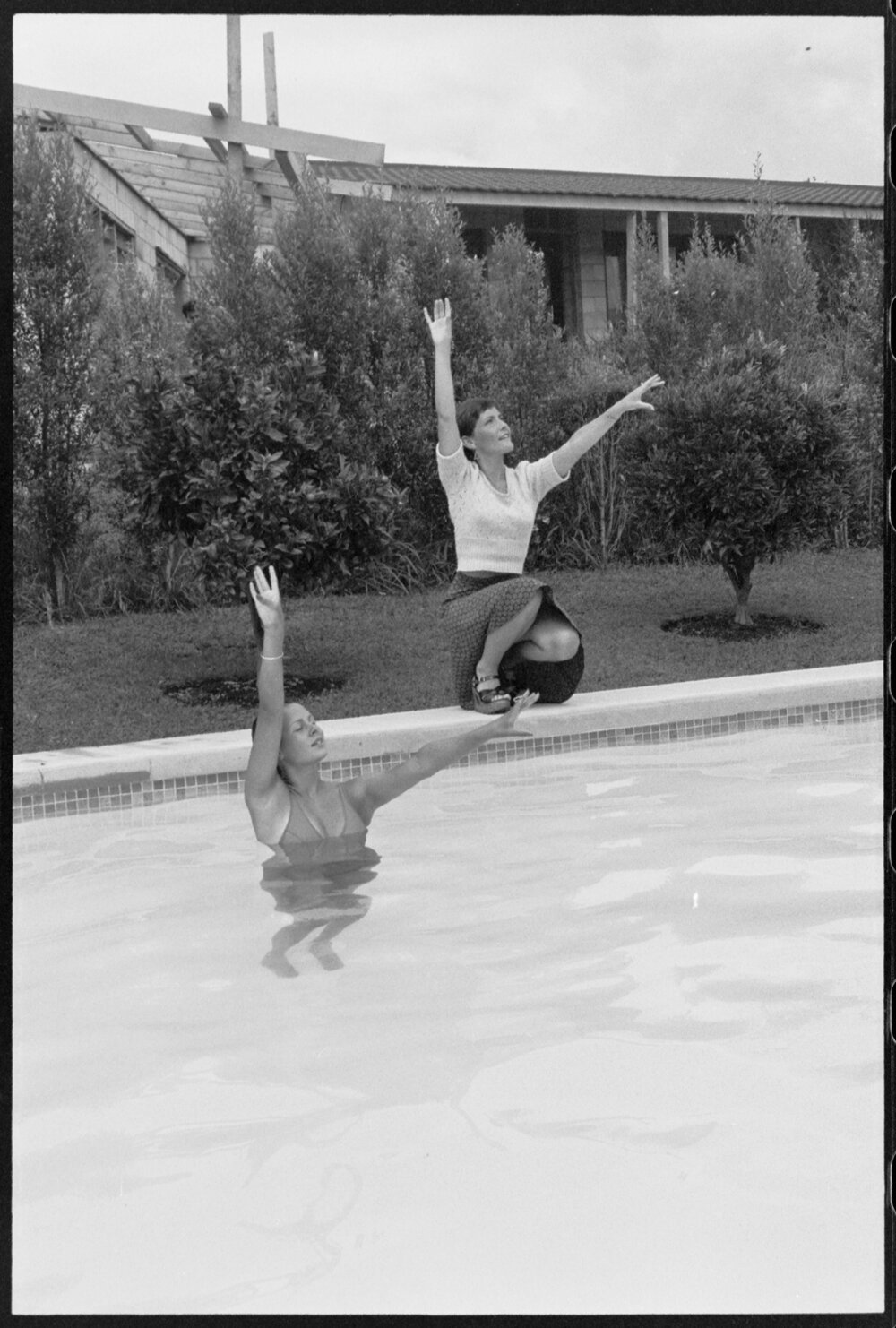 Date23 January 1975Reference Numberphoto gcc-32125DescriptionAqua ballet. Synchronised swimming national director of coaching, Miss Debbie Lye (back) and New Zealand's top synchronised swimmer, Sally-Ann Jenkins. They have been helping the development of the sport at the Ōtūmoetai Amateur Swimming Club. Published 23 January 1975.FormatNegativePhysical Description35mm black-and-white negative (14/15)Photographer/CreatorBay of Plenty Times