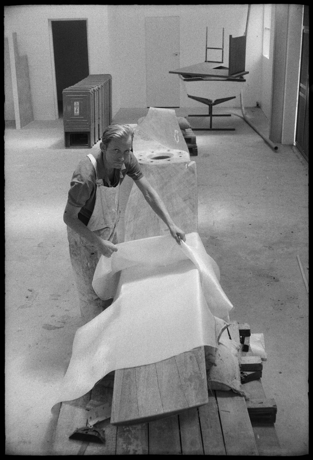 Date25 January 1975Reference Numberphoto gcc-32201DescriptionThis fibreglass lighting standard developed by a Mount Maunganui company will soon be seen on traffic islands and motor-ways throughout New Zealand. Seen finishing off the prototype is company employee, Mr A. R. Manwell. Published 25 January 1975.FormatNegativePhysical Description35mm black-and-white negative (1/9)Photographer/CreatorBay of Plenty Times