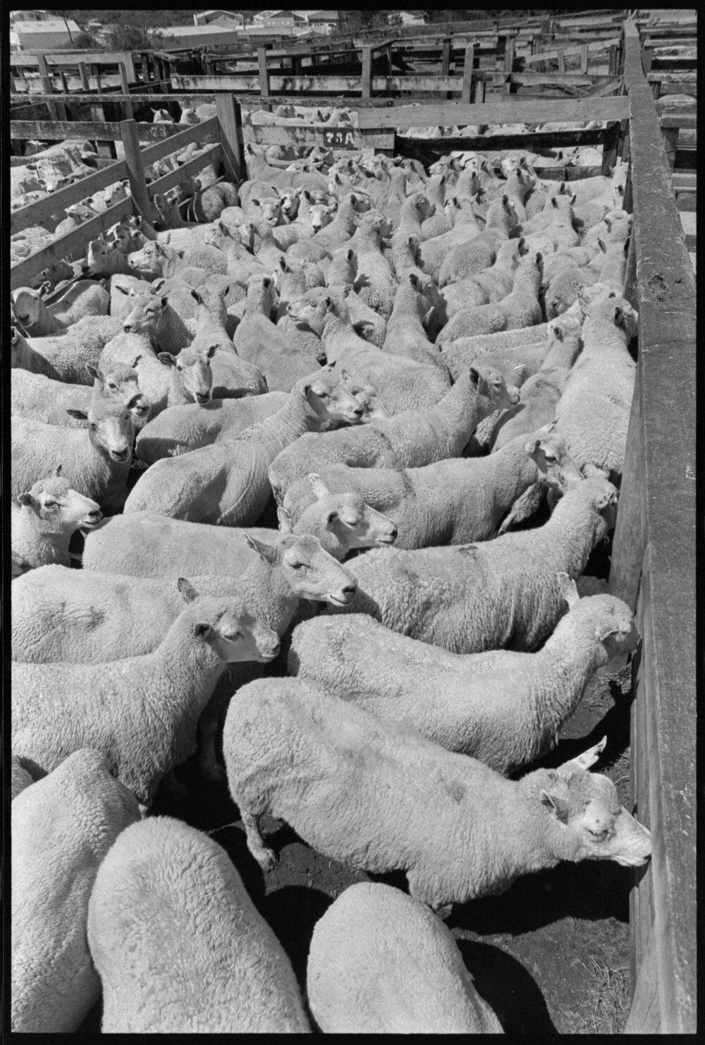 Date25 January 1975Reference Numberphoto gcc-32212DescriptionSheep on offer in the yards at the Tauranga Ewe Fair held at Judea. Published 25 January 1975.FormatNegativePhysical Description35mm black-and-white negative (3/6)Photographer/CreatorBay of Plenty Times
